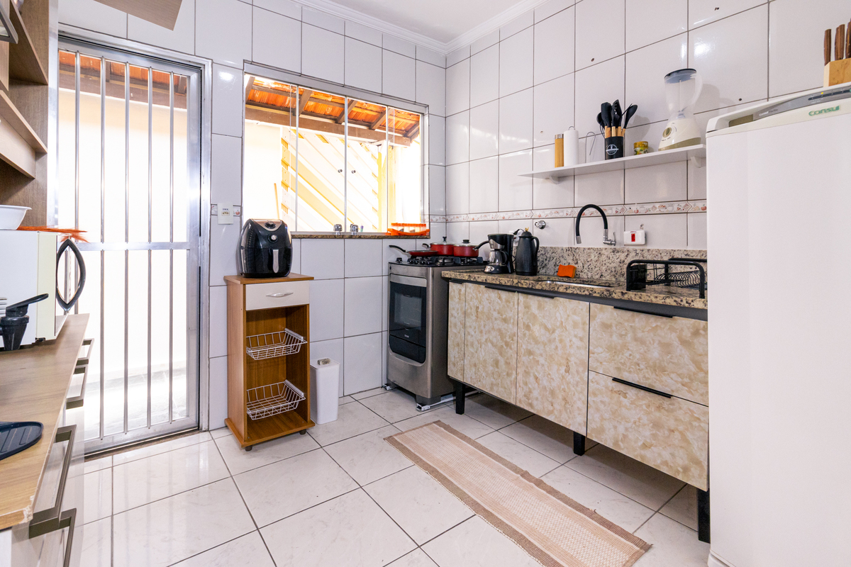 Nos fundos, a casa conta com uma edícula completa, com sala, quarto, banheiro e até um escritório, ampliando as possibilidades do imóvel. Já na parte principal, são três quartos, sala espaçosa, cozinha completa e garagem, com ambientes bem definidos e fáceis de entender no dia a dia.
